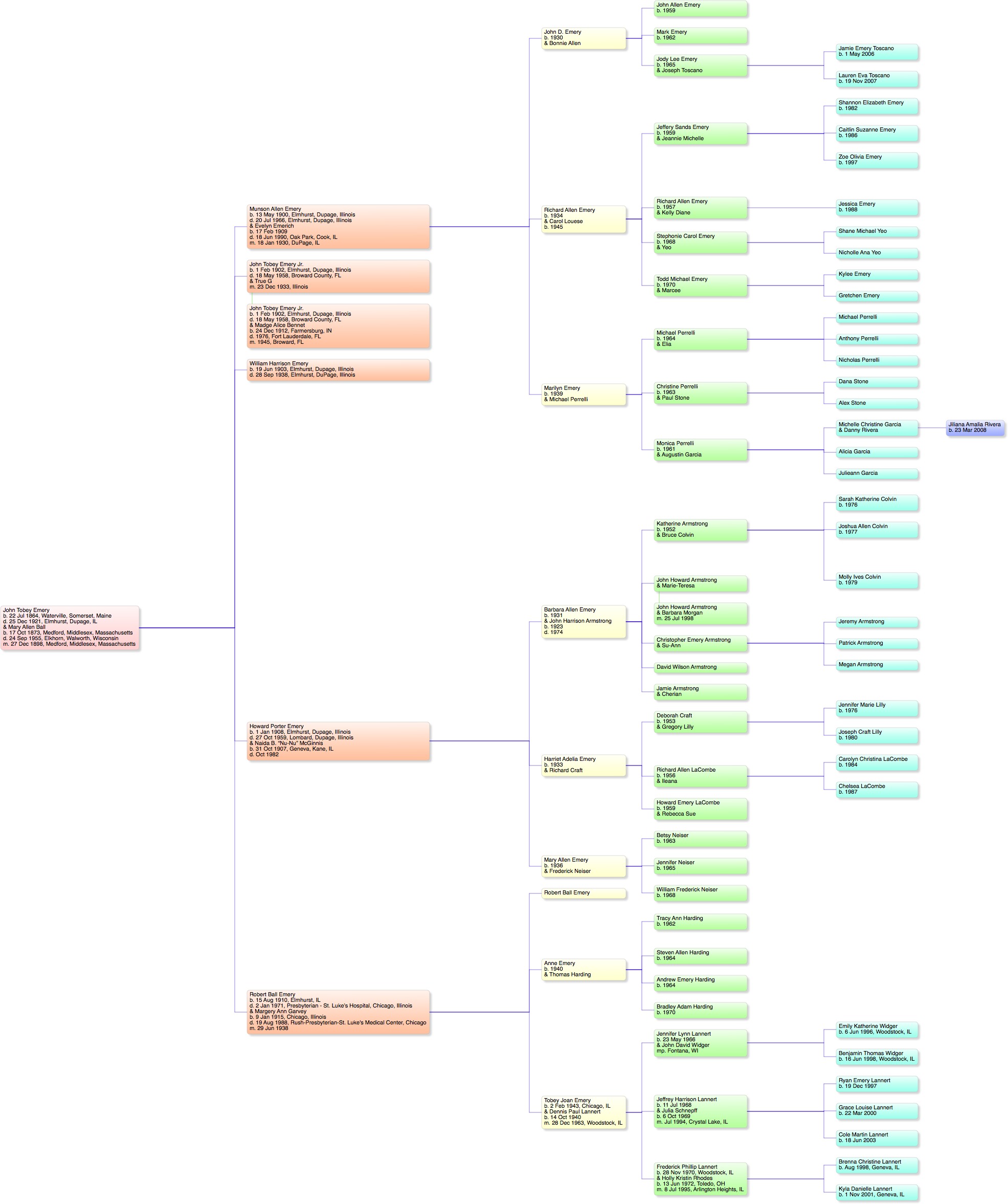 Charts: Charts are available in JPEG format of the descendants of Alben and William H. Emery. The charts are big, and will not fit onto the screen of most browsers, nor will they print onto a single sheet of paper. Still, you might find them useful.